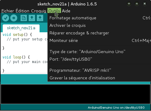 // Définition de la vitesse de fonctionnement du port série, etc.